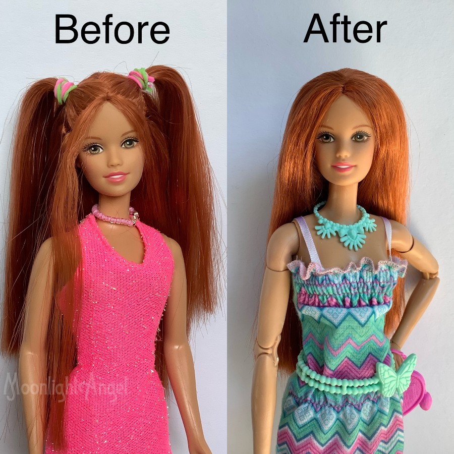 Florida Vacation Skipper vino en una caja de zapatos con otras muñecas y desde que la saqué me llamó la atención lo suave que seguía teniendo el pelo aunque necesitaba un baño urgentemente. Estoy muy contenta de lo guapa que quedó.